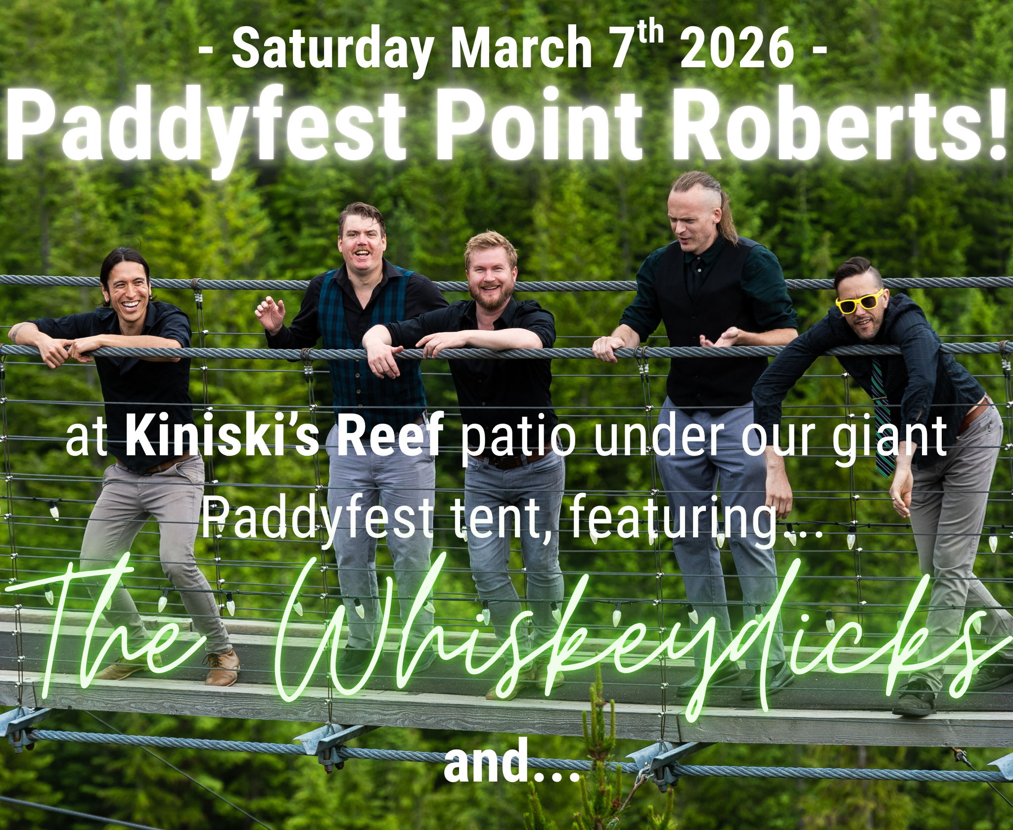 This Saturday March 7th, 2026 at Kiniski’s Reef patio under the giant Paddyfest tent!